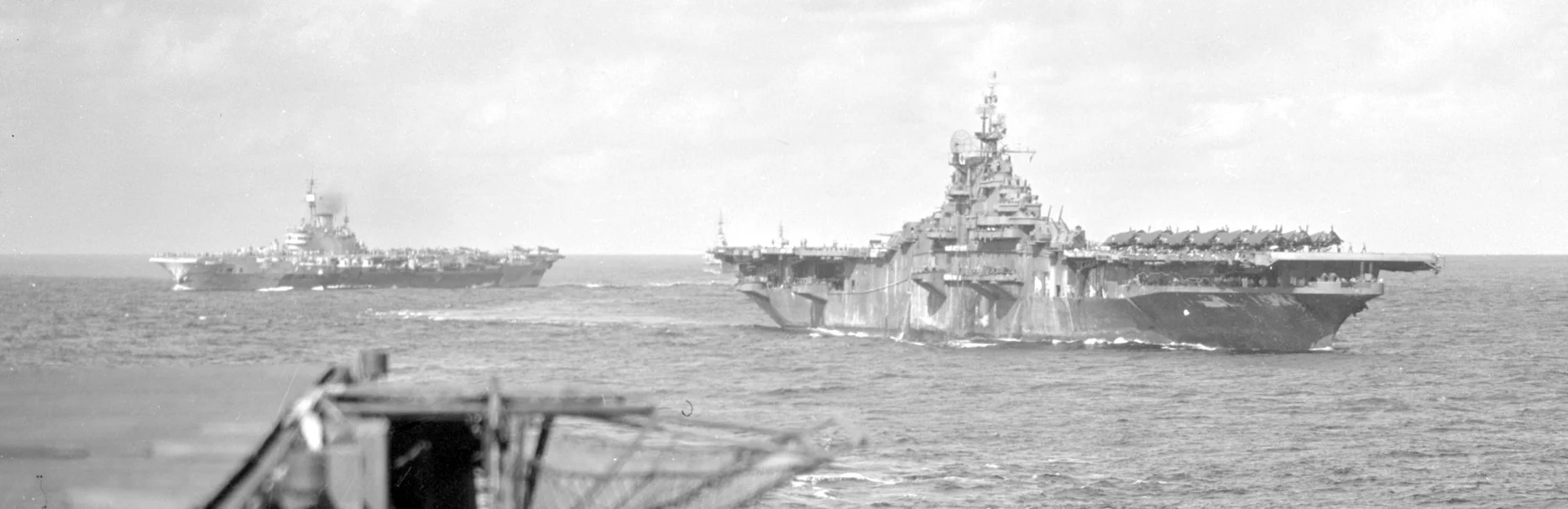 It’s not at all often you get an RN armoured carrier in the same frame as a USS Essex class. Here HMS Implacable crosses the stern of USS Randolph off the coast of Japan. Many, many thanks to Researcher at Large for finding the original negative of this image and sharing a fresh digital print with me.